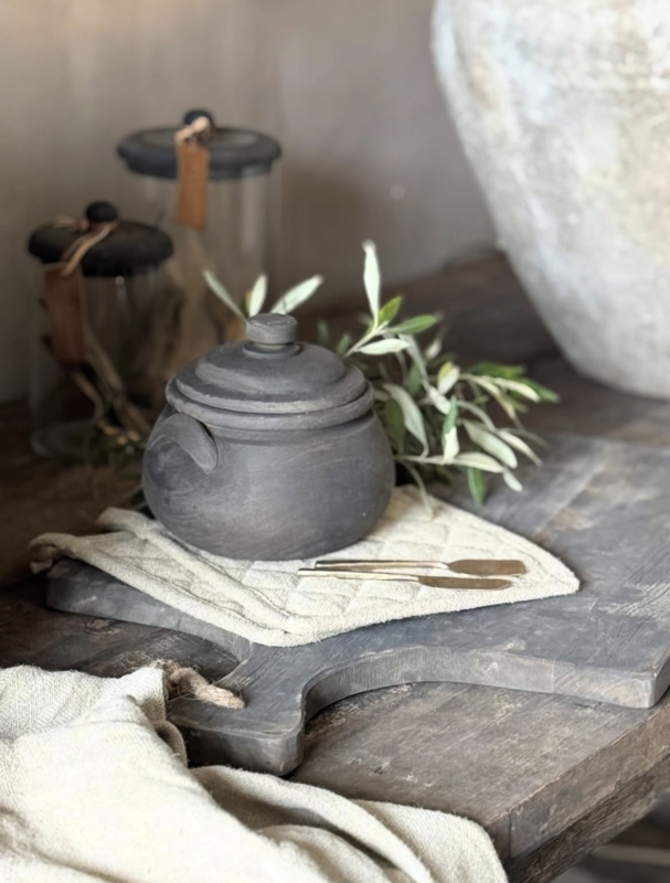 Gebruik het potje ter decoratie op een tafe. Rekje of keukenplank. leuk ook met walnoten of suikerklontjes erin. de maten zijn: 12 cm doorsnede, de hoogte is 13 cm