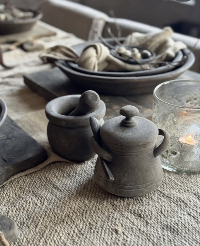 Leuk in de keuken, mooie vergrijsde vijzel. Leuk als decoratie!
