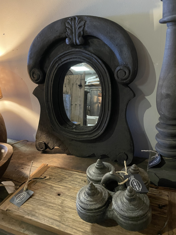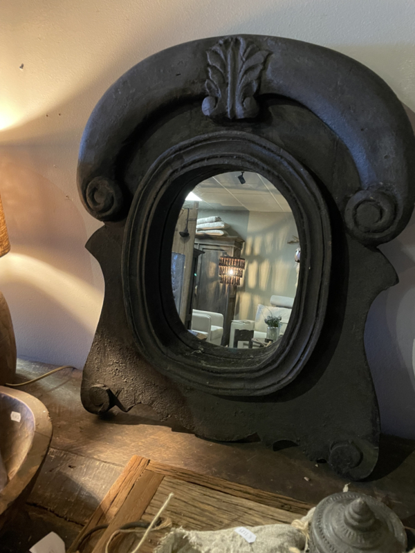 Prachtige ossenoog spiegel in een donkergrijze kleur