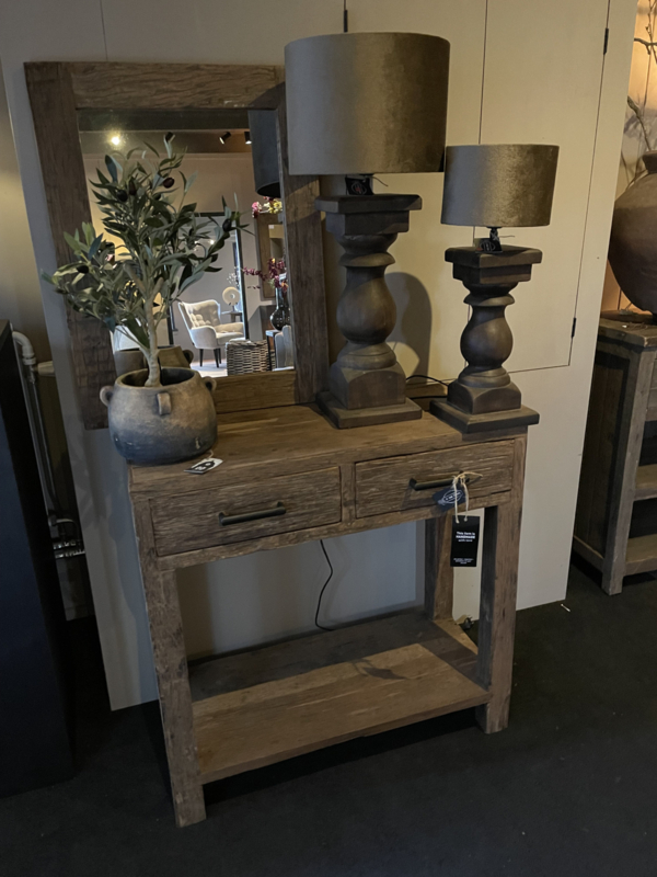 De spiegel is gemaakt van oud rustiek hout.De maten zijn:70 x55 cm.