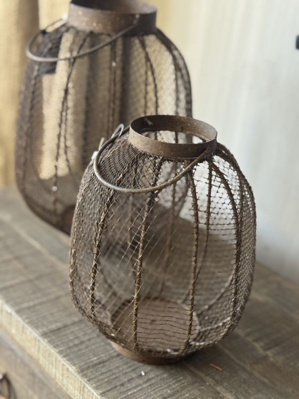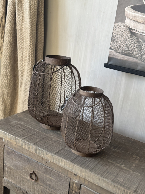 Roestig winddicht mooi met een kaars erin, leuk om zo op tafel te zetten maar ook leuk aan de wandhanger , die is los te bestellen.