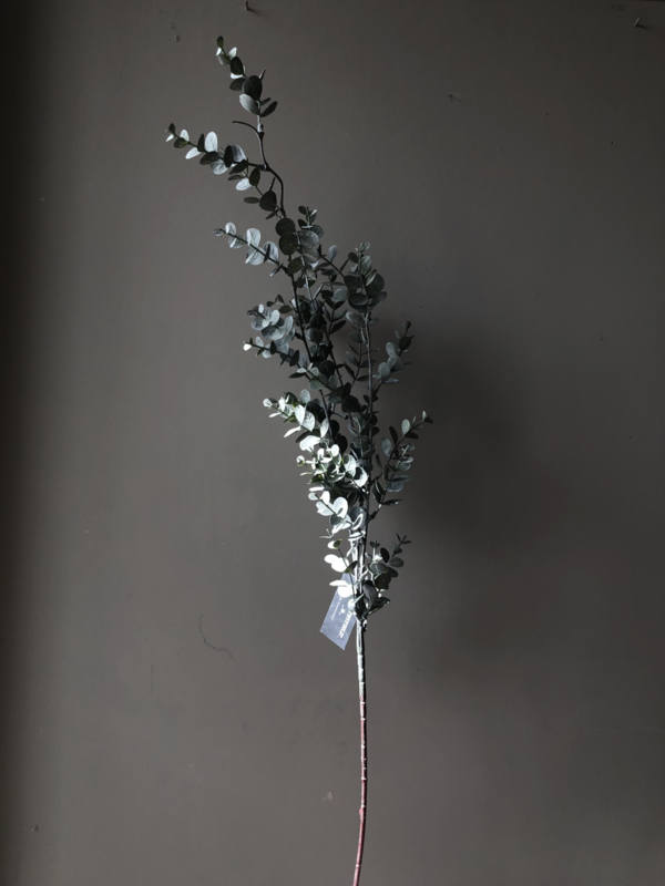 Eucalyptus. Een vergrijsde, natuurlijke tak die overal bij past. Leuk als vulling in een boeket.