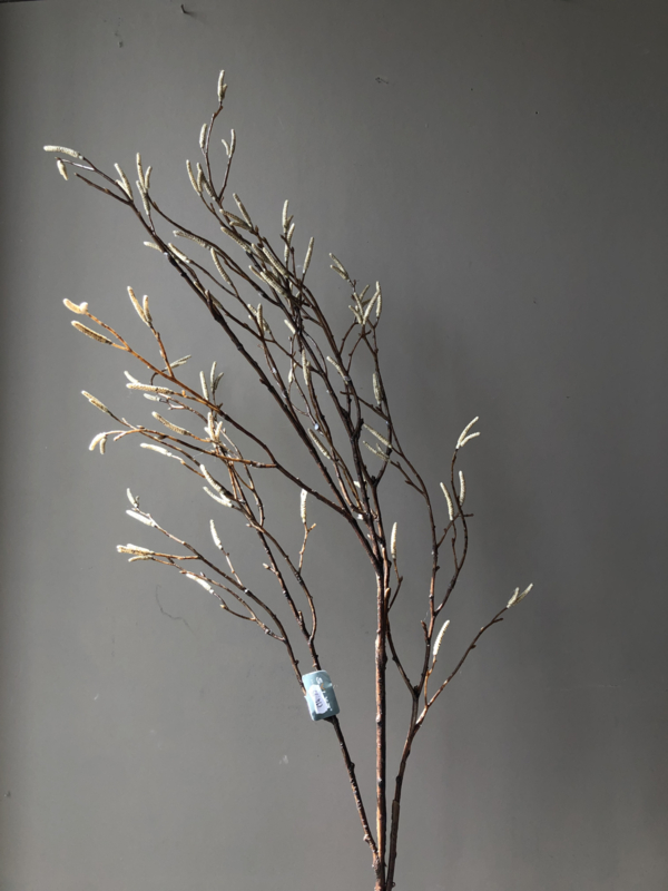 een witte berken tak. Een lange karakteristieke tak met witte katjes.