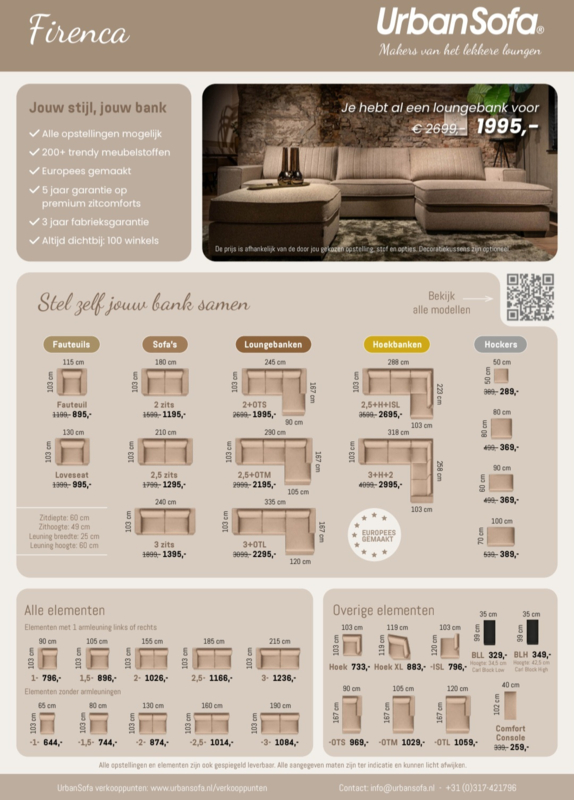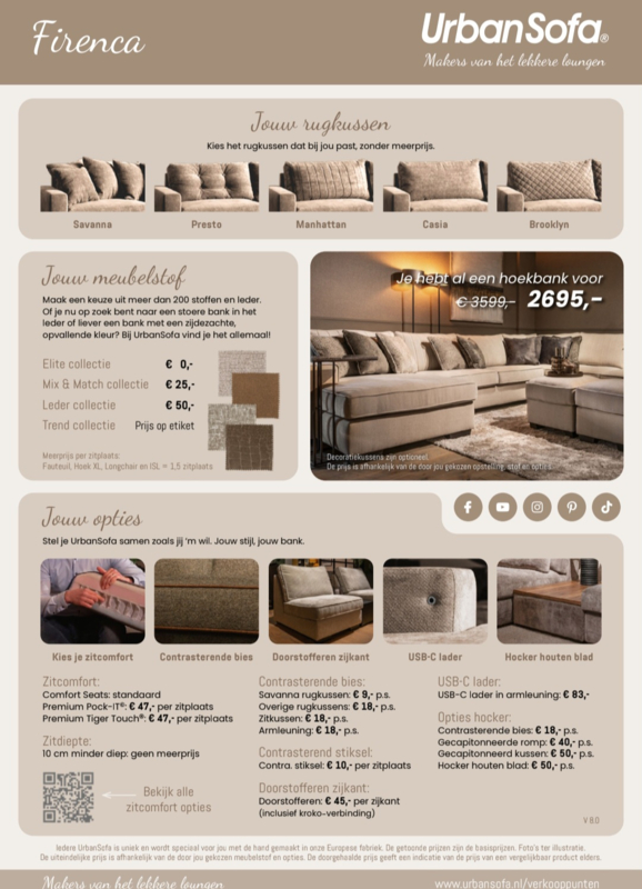 OverzichtDe Firenca is een topmodel uit de UrbanSofa collectie. De Firenca loungebank is heerlijk comfortabel en past in zowel een landelijk als modern interieur.
