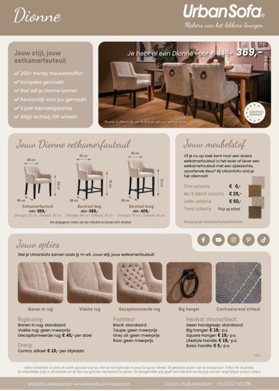 Dionne is ook verkwijgbaar als chique barstoel. De mogeljikheden zijn groot!