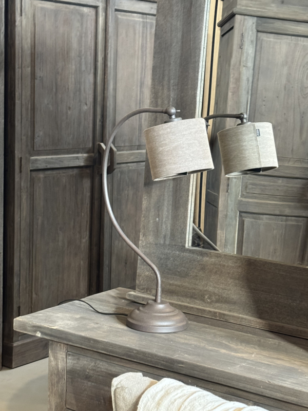Mooie bruine tafellamp met een sierlijke boog. - rough brown