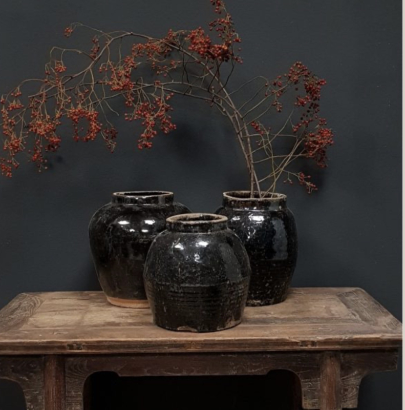 Oude zwarte geglazuurde gember potDeze prachtige oude potten zijn een plaatje om te zien.