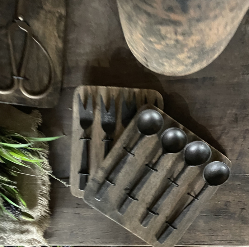 Lepeltjes op houten bordjeDeze sfeervolle set met lepeltjes van aura Peeperkorn zijn toch te leuk!