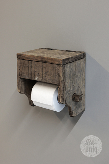 Toiletrolhouder met bakjeToiletrolhouder gemaakt van oud hout.