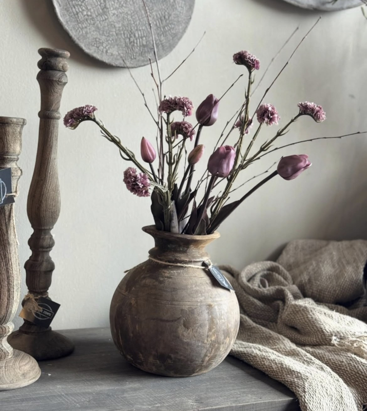 Toefje kunst paarse druifjesVoorjaar in huis met dit gezellig toefje van kunst druifjes en een shabby doek. Op een schaal of aan een luikje helemaal leuk.