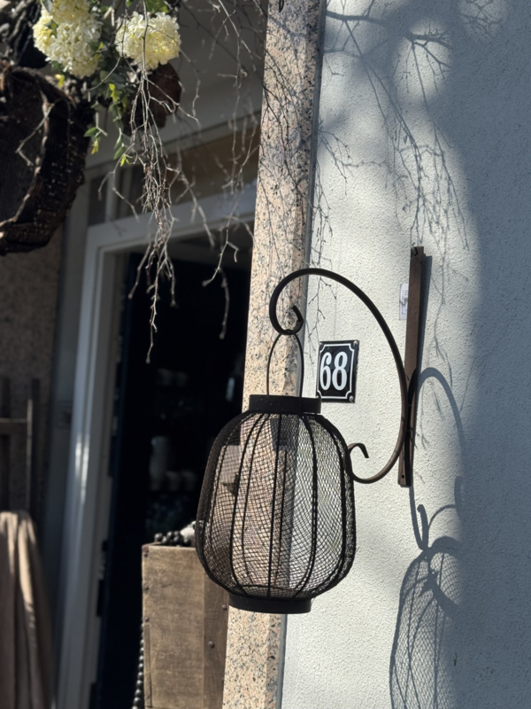 Windlicht metaalRoestig windlicht, mooi met een kaars erin en dan aan de leuke hanger.